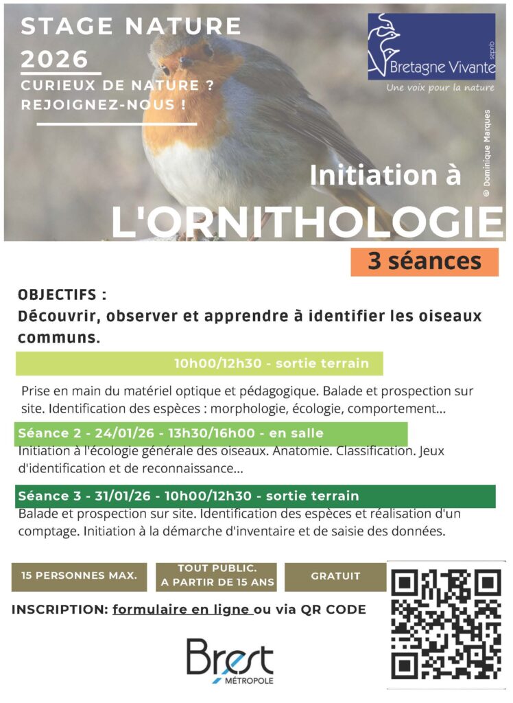 Bretagne Vivante vous propose un stage ornithologie : découvrir, observer et apprendre à identifier les oiseaux communs.