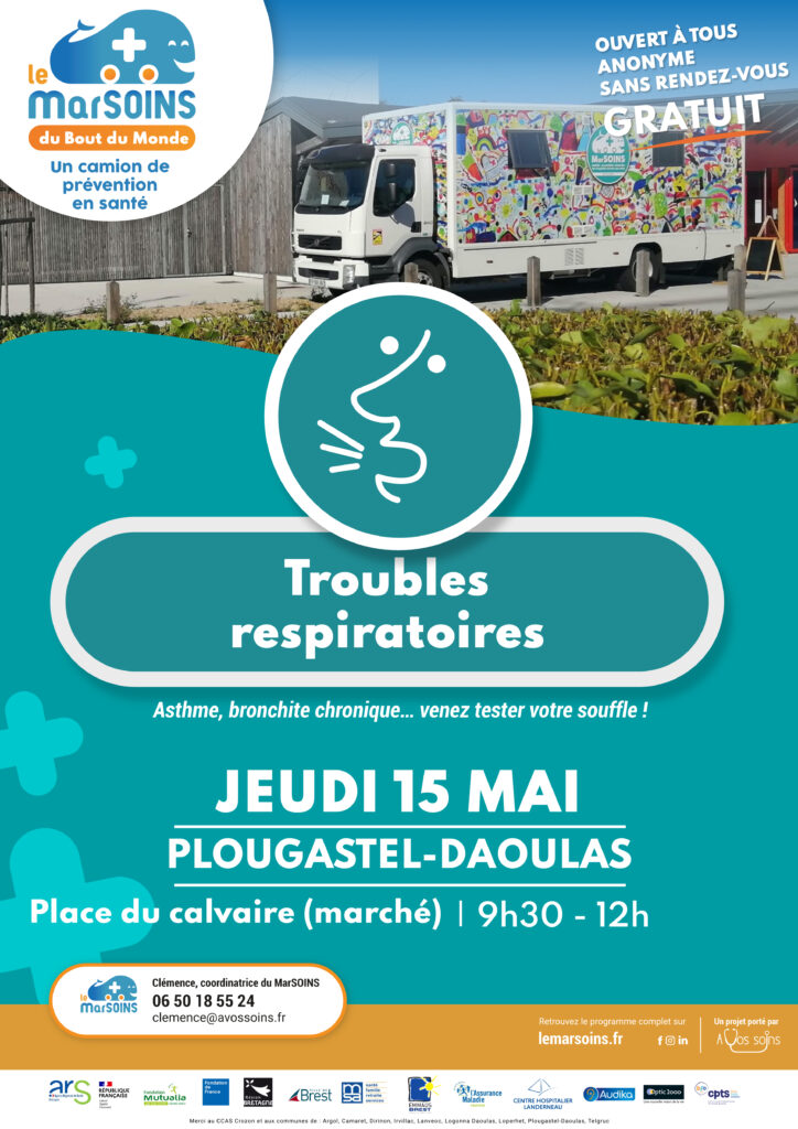 Camion de prévention santé le jeudi 15 mai de 9h30 à 12h sur la place du Calvaire : «les troubles respiratoires : asthme, bronchiques chroniques…».