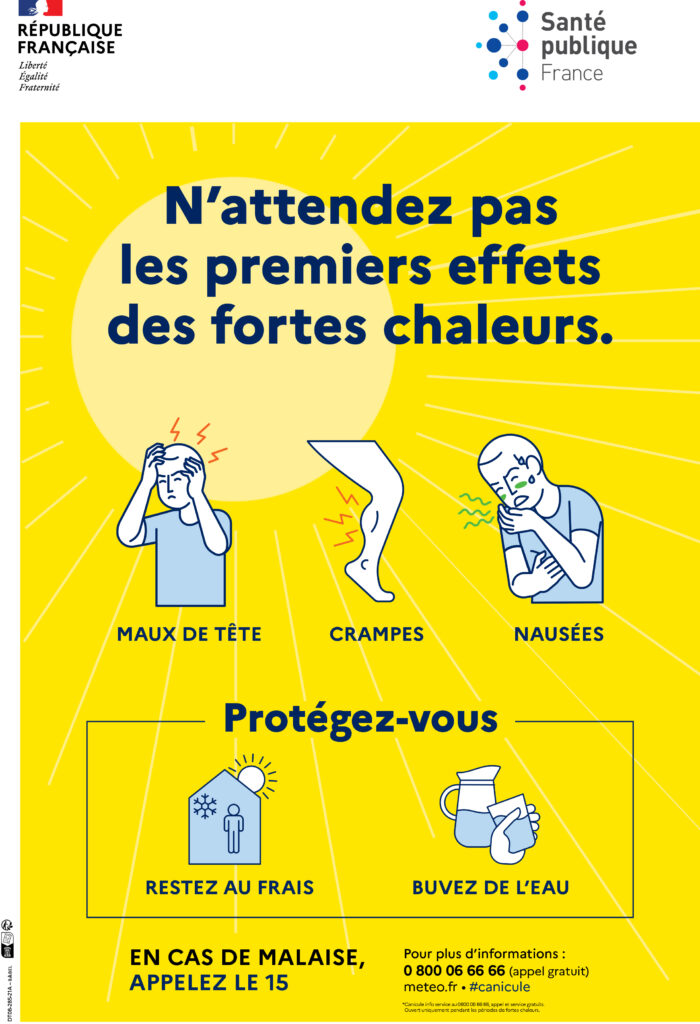 Un programme de prévention de la canicule est mis en place sur le plan national afin de sensibiliser la population sur la conduite à tenir en cas de fortes chaleurs. Les personnes plus fragiles (âgées de plus de 65 ans, de plus de 60 ans sous condition, en situation de handicap, …), tout particulièrement les personnes isolées, sont invitées à solliciter leur inscription sur un registre qui permettra, en cas de déclenchement du plan canicule par le préfet, de faire intervenir auprès d’elles les services de surveillance nécessaires : un appel téléphonique journalier et, en cas d’inquiétude, une visite au domicile.