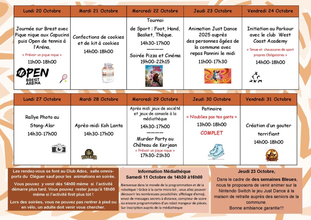 Programme du club Ados